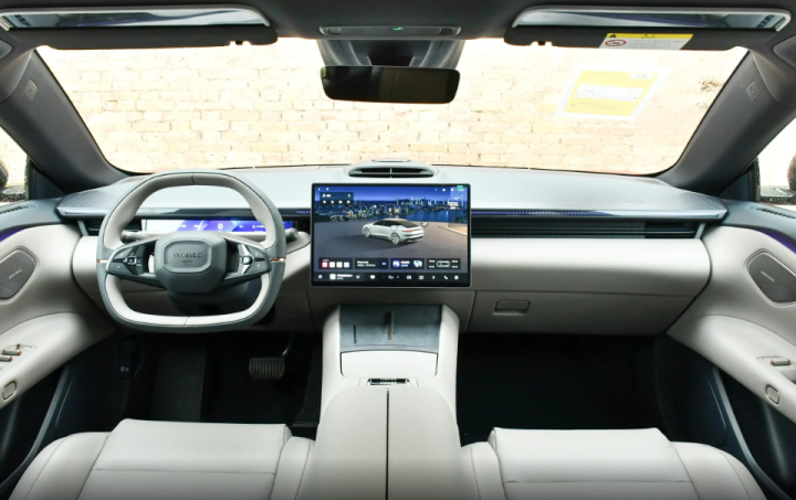 领克Z10的内饰虽然极致简单,但并不失未来科技感,一看就是现代的产物。15.4英寸中控屏相当显眼,不论是屏幕显示清晰度还是操控流畅度都没什么好挑剔的,据说它的车机芯片比8295P还要快一些。12.66英寸液晶仪表盘极其小巧,配合25.6英寸HUD抬头显示系统,向驾驶员展示丰富行车信息。